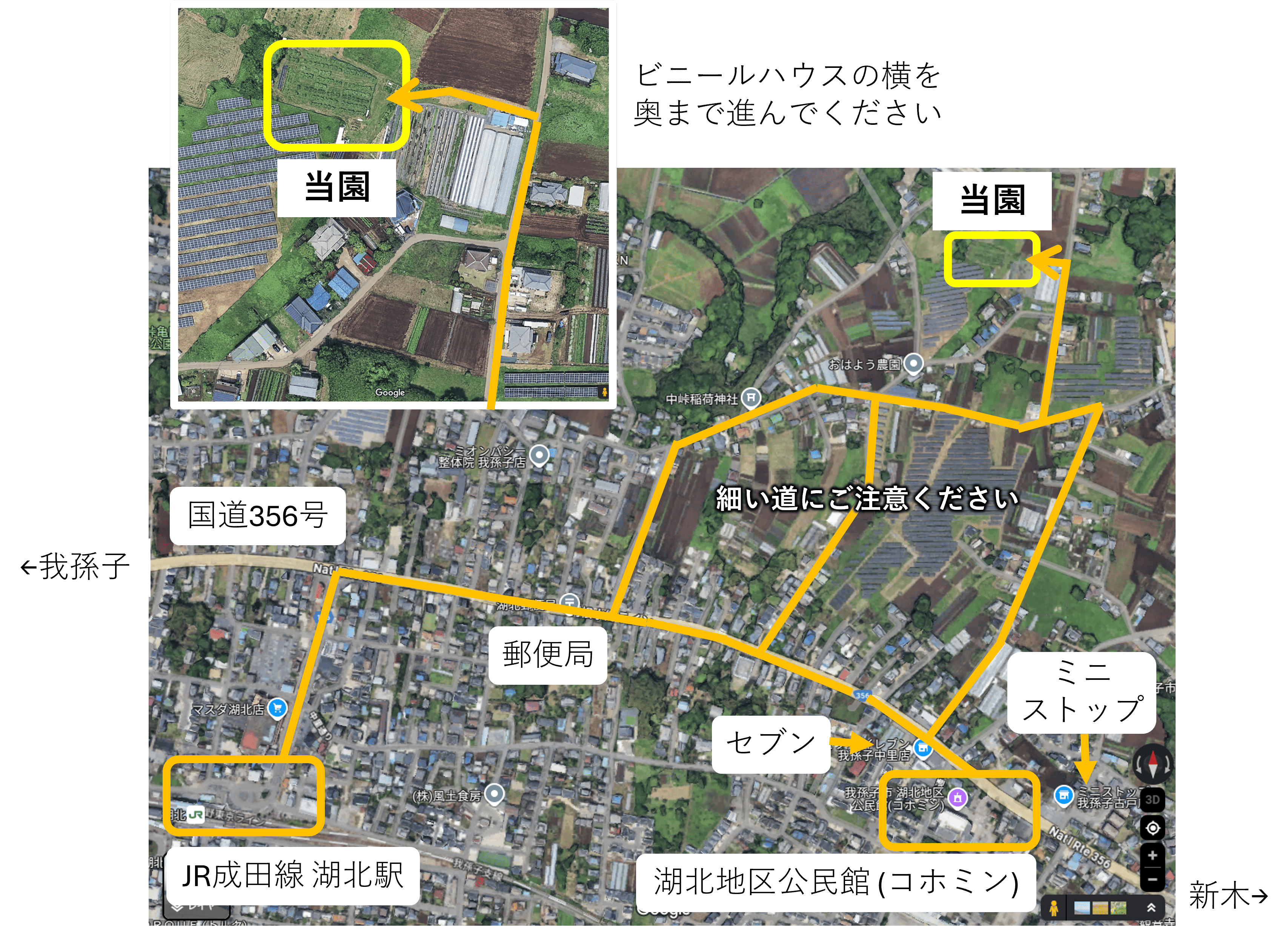 - 農園にはあいにく住所がございません。Googleマップのリンクは次のとおりです。